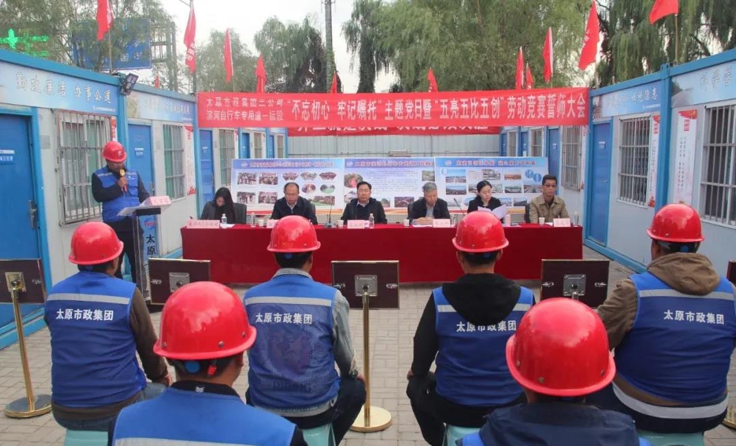 10月12日下午,市委住建工委委員、市住建局副局長、二級調(diào)研員石永明參加了太原市政集團第三工程公司在濱河自行車專用道工程一標段項目部召開的“不忘初心牢記囑托”主題黨日暨“五亮五比五創(chuàng)”勞動競賽誓師大會。集團公司黨委書記、董事長郝東輝,黨委副書記、副董事長、總經(jīng)理溫慧武,黨委副書記、董事閆水平參加了活動。