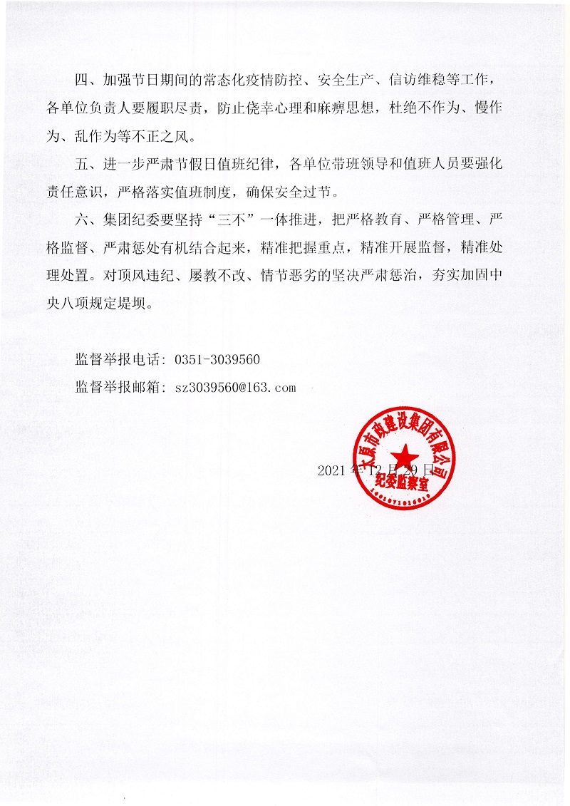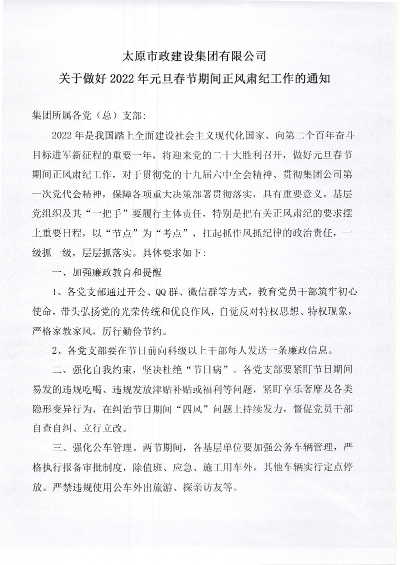 太原市政建設集團有限公司關于做好2022年元旦春節(jié)期間正風肅紀工作的通知