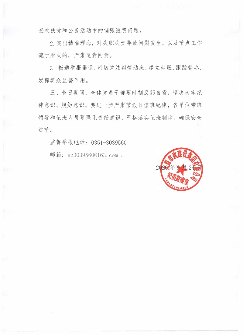 太原市政建設集團有限公司關于嚴明“中秋、國慶”期間有關紀律要求的通知