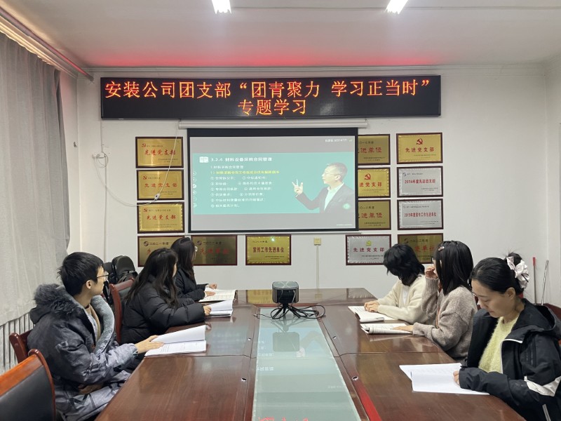 2月18日,安裝公司團(tuán)支部開展“團(tuán)青聚力 學(xué)習(xí)正當(dāng)時”專題學(xué)習(xí)活動,此次活動旨在幫助團(tuán)員青年扎實掌握專業(yè)知識,為今后的工作奠定堅實基礎(chǔ),通過學(xué)習(xí)《建設(shè)工程項目管理》中的“材料設(shè)備采購合同管理”內(nèi)容,大家認(rèn)識到要始終保持終身學(xué)習(xí)的理念,使知識和本領(lǐng)與承擔(dān)的工作相適應(yīng),為企業(yè)發(fā)展注入強勁動能。