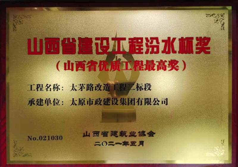 近日,集團公司承建的太茅路改造工程二標段、臥虎山快速路建設工程一標段、上莊街(西中環—少管所三岔口)道路改造三項工程喜獲山西省建筑業協會頒發的2020年度“汾水杯獎”。這一獎項是山西省建設工程質量最高獎,是我省唯一與魯班獎、國家優質工程獎、安裝之星獎等國家級工程建設獎項接軌的獎項。