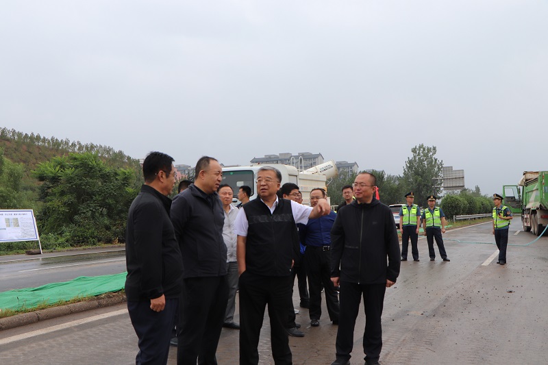 山西省交通廳副廳長王晉實地查看了南內環街東延建設工程下穿東山過境高速施工段封閉狀況以及臨時保通便道設施配置、安全警示標識標牌配備等情況,充分肯定了集團公司為保障高速公路正常運行所做的各項工作,他強調要進一步強化安全意識、落實安全責任,加強施工管理,全力以赴推進通道施工進度,盡快恢復此段高速公路的通行。