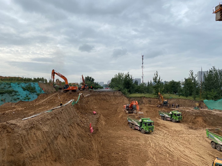 開工伊始,為保證在工期內保質保量完成施工任務,項目部將工程按照路口和節點劃分為三個工區,采取平行作業、見縫插針、多點開花的施工方式,搶抓施工節點,打開工作面。根據設計要求,該工程在下穿東山過境高速節點設置通道,采用全斷面分級放坡開挖方式進行施工。由于高速封閉、改遷、臨時保通便道的使用和恢復都需要與交警、高速公路等多個單位、部門溝通協調,程序繁瑣、手續復雜。項目部精準施策破解難點,派專人負責溝通協調,提前按要求備齊資料,在最短的時間內辦理好了相關手續。在辦理通道施工相關手續的同時,其他工區也在緊張施工,平行作業與流水作業交替進行。截至目前,東中環到高速路以西已完成中面層瀝青混凝土鋪筑,為下穿高速通道工程的土方開挖、外運打通運輸通道,為后續通道施工創造了良好的施工條件,贏得寶貴的施工時間。