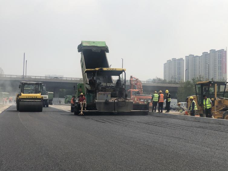 面對工期緊、任務(wù)重等情況,項目部不等不靠、見縫插針,緊抓一切施工有利時機,快速推進該工程東段道路下面層和中層瀝青混凝土鋪設(shè)作業(yè)。由于瀝青攤鋪施工受到雨水天氣、環(huán)保管理等因素影響,項目部結(jié)合實際組織施工,狠抓現(xiàn)場管理和過程控制,確保施工質(zhì)量、進度等各項工作處于時刻受控狀態(tài)。施工中,項目部超前部署、提前著手,調(diào)配攤鋪機、壓路機、運料車等機械,做好各項準備工作,并要求施工人員嚴格把關(guān)各道工序,協(xié)調(diào)推進攤鋪進展;施工人員緊盯現(xiàn)場,全程跟進攤鋪過程,確保整體攤鋪質(zhì)量。同時在該工程的西段施工現(xiàn)場,管線施工、路基平整、路側(cè)石砌筑等工序在作業(yè)面同時開展,有效壓縮工序間的銜接時間;在管線施工中,項目部重點部署溝槽回填施工,嚴格保障回填質(zhì)量達到規(guī)范要求。