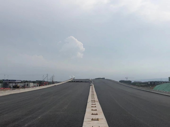 該工程包含橫二路跨線橋、警務基地規劃三路跨泥屯河橋、警務基地規劃四路跨泥屯河橋三座橋梁。橋梁工程位于施工場地中部,處于重要交通出入口位置,交通壓力大,為了避免因施工產生交通壓力,項目部采取分幅施工、分段施工的方式,并安排專人對過往車輛進行導行。同時,項目部還在臨近高速路口,對進出車輛進行登記,并發放通行證,控制車流量,避免對工程施工造成影響。在進行河道部分的施工時,為了防止雨季影響工程施工,項目部對1114.6米的河道進行了治理,對河水進行截流,并埋設導管。同時,項目部還堅持“挖多少完多少”的施工原則,盡量不留坑穴,并且在基坑邊圍起小土墻,防止河水倒灌。截至目前,橋梁工程面層瀝青混凝土已鋪筑完畢,正在進行防撞護欄、隔離欄桿、橋梁伸縮縫和落水管的施工工作。