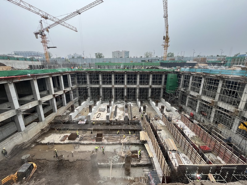 自開工建設以來,項目部在保證施工安全和工程質量的前提下,迎難而上、主動出擊。項目工期緊、任務重,為按時完成節點目標,項目部不定期召開推進會、交底會,組織技術人員到現場,分析施工形勢,積極采取措施,明確工作的重點和方向,搶抓施工“黃金期”,跑出建設“加速度”。同時,項目部與建設各方積極調整施工計劃和方案,倒排工期,按照不同階段的工作需要部署施工方案,抓落實,提要求,解決實際問題,以實現節點工期為目標,切實保證施工建設的穩步有序推進。目前,該工程正在進行調蓄池地梁、底板、池壁的施工。