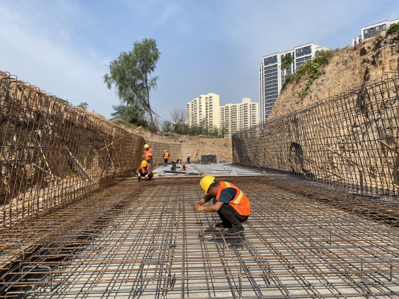 四公司承建的南沙河水庫除險加固工程施工現場一派繁忙的施工景象,施工人員忙碌的身影穿梭在各個角落,以飽滿的熱情和昂揚的斗志,全力確保工程進展。面對復雜的地質條件、緊張的工期要求、嚴格的質量標準,項目部上下快馬加鞭、爭分奪秒,精心組織施工,科學安排進度,合理調配資源,確保工程順利進行,目前正在進行溢洪道泄洪槽的施工。項目部組織實施全方位、全過程的有效控制措施,測量員嚴格按照放坡比例精準放線,時時測量、復測,確保深溝槽開挖時邊坡穩定;質檢員按要求嚴格檢測確保混凝土、鋼筋、土工布質量優良,重點對基面處理、接縫、固定等環節層層把關,切實提升工程質量。同時,項目部始終將安全施工放在首位,制定各項應急措施,及時排查安全隱患,為工程建設打下堅實基礎。施工“不打烊”是市政人對責任的堅守,他們用汗水和智慧詮釋著奉獻的意義,用行動和成果展現著奮斗的價值。
