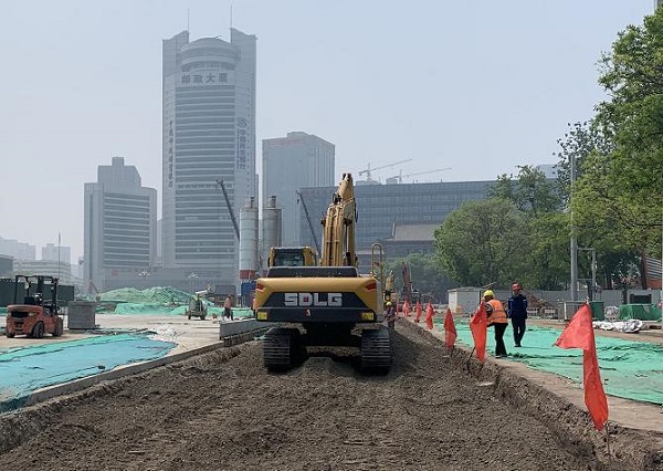 5月12日,在二公司承建的五一廣場改造工程市政道路及管網(wǎng)工程施工現(xiàn)場,9臺挖掘機(jī)、3臺裝載機(jī)、3臺壓路機(jī)“同步作業(yè)”,灑水車、霧炮車、渣土車等車輛“接力行進(jìn)”,雨污水管線施工、混凝土墊層、石材鋪筑等工序“全面開花”,150多名施工人員全部投入施工“攻堅戰(zhàn)”。