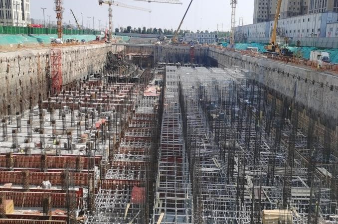 施工中,項(xiàng)目部從制度管控和具體實(shí)操入手,早部署、早落實(shí),始終做到“心中有全局,手中有物資”。該工程的施工重點(diǎn)是深基坑大體積施工,如遇強(qiáng)降雨天氣,基坑內(nèi)積水量大,無法自行排出。項(xiàng)目部根據(jù)深基坑施工現(xiàn)狀,為各施工隊(duì)伍配備排水泵,確保在24小時內(nèi)將積水排出基坑外, 并加快深基坑底板混凝土澆筑,盡早硬化底板地面;基坑兩側(cè)用沙袋設(shè)置阻水帶,提前做好邊坡防護(hù),防止雨水對深基坑造成浸泡侵蝕。同時,項(xiàng)目部安排施工人員加大監(jiān)測頻率,如果發(fā)現(xiàn)數(shù)據(jù)異常,及時上報(bào)并組織專家論證,確保深基坑施工“萬無一失”。