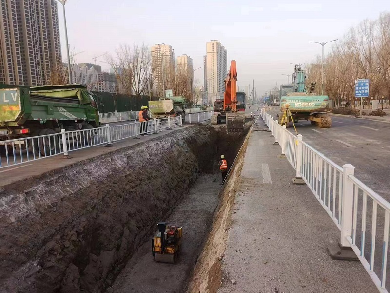 接到施工任務(wù)后,項目部超前部署、科學(xué)規(guī)劃,開展工程推演,根據(jù)施工實際內(nèi)容,將工程分為8個標(biāo)段,提前安排各標(biāo)段的人、機、料配置,并組織進(jìn)行現(xiàn)場勘測,多處布設(shè)探坑,認(rèn)真摸排現(xiàn)狀管線位置,精準(zhǔn)測量拆遷地段,做到施工前各項數(shù)據(jù)“成竹于胸”。由于施工正值冬季,項目部結(jié)合施工現(xiàn)狀,制定冬季施工專項方案,提前籌備各類防寒物資,安排專人負(fù)責(zé)生活及作業(yè)區(qū)的用電及防火管理,有效確保施工安全。同時,項目部同步進(jìn)行工地大門、圍擋安裝,各類標(biāo)識標(biāo)牌準(zhǔn)備等工作,僅用2天時間已將3000多米圍擋,10個工地大門及各類標(biāo)識標(biāo)牌安排就位,展現(xiàn)集團公司的良好形象。