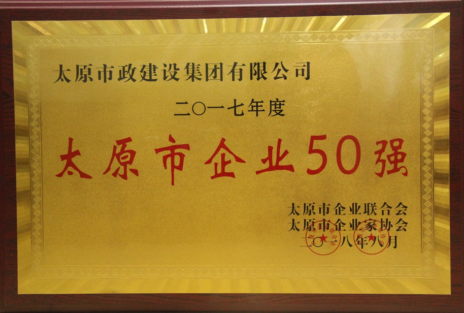 8月15日,太原市政建設集團有限公司被太原市企業聯合會、太原市企業家協會評為“2017年度太原市功勛企業”“2017年太原市企業50強”,集團公司位居第25位。黨委書記、董事長、總經理張平國榮獲“2017年度太原市功勛企業家”榮譽稱號。
