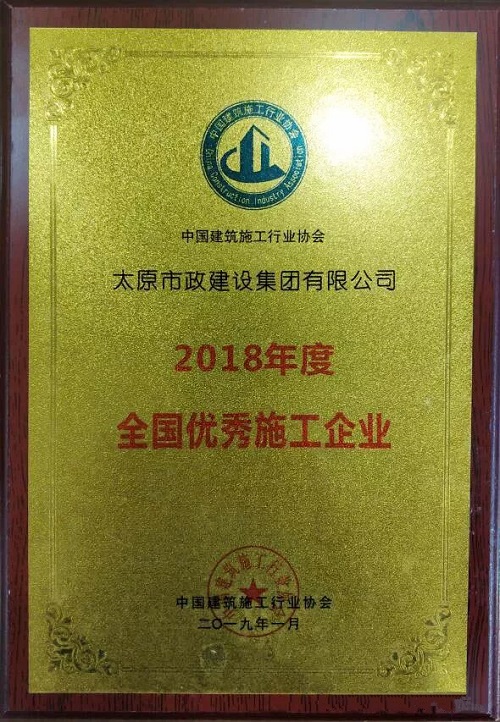太原市政建設(shè)集團有限公司榮獲“2018年度全國優(yōu)秀施工企業(yè)”榮譽稱號