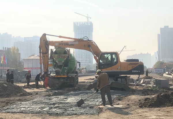 太原市政建設(shè)集團有限公司中心街西站道路恢復(fù)工程正在進行道路、排水工程