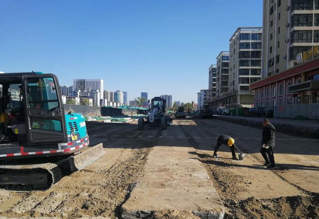 四公司軍民路(學府街——晉陽街)道路改造工程中許坦西街至師范街段正在進行底基層水穩鋪設