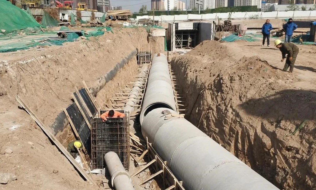 施工過程中,該區域地下管線情況復雜密集,多條管線需要改遷,項目部編制專項施工方案,提前做好大量準備工作,確保施工安全。