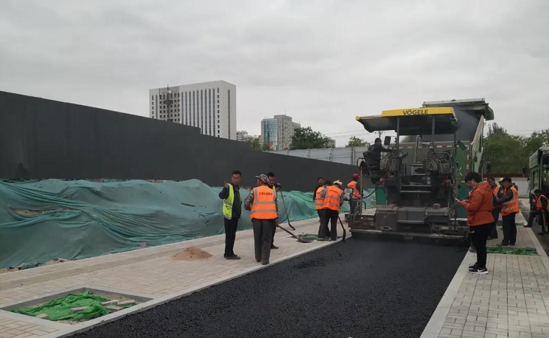 5月4日9點,當人們還在享受“五一”長假的時候,四公司軍民路改造工程施工現場,兩臺攤鋪機、四臺壓路機、十多臺運料車正在緊張施工中……隨著一車車滾燙的瀝青被攤鋪到地面,冒著刺鼻的熱氣,大家來不及擦拭臉上的汗水,緊隨攤鋪機,用手里的摟耙不停地平整著粒料。攤鋪過程中,測量員嚴格把控高程,時刻監測相關數據,質檢員全程盯守,實時監控鋪筑溫度和厚度,嚴把施工質量,施工員協調機械確保施工段連續鋪筑......在全體施工人員的共同努力下,430米道路的機動車道和非機動車道下面層瀝青混凝土全部鋪筑完畢。
