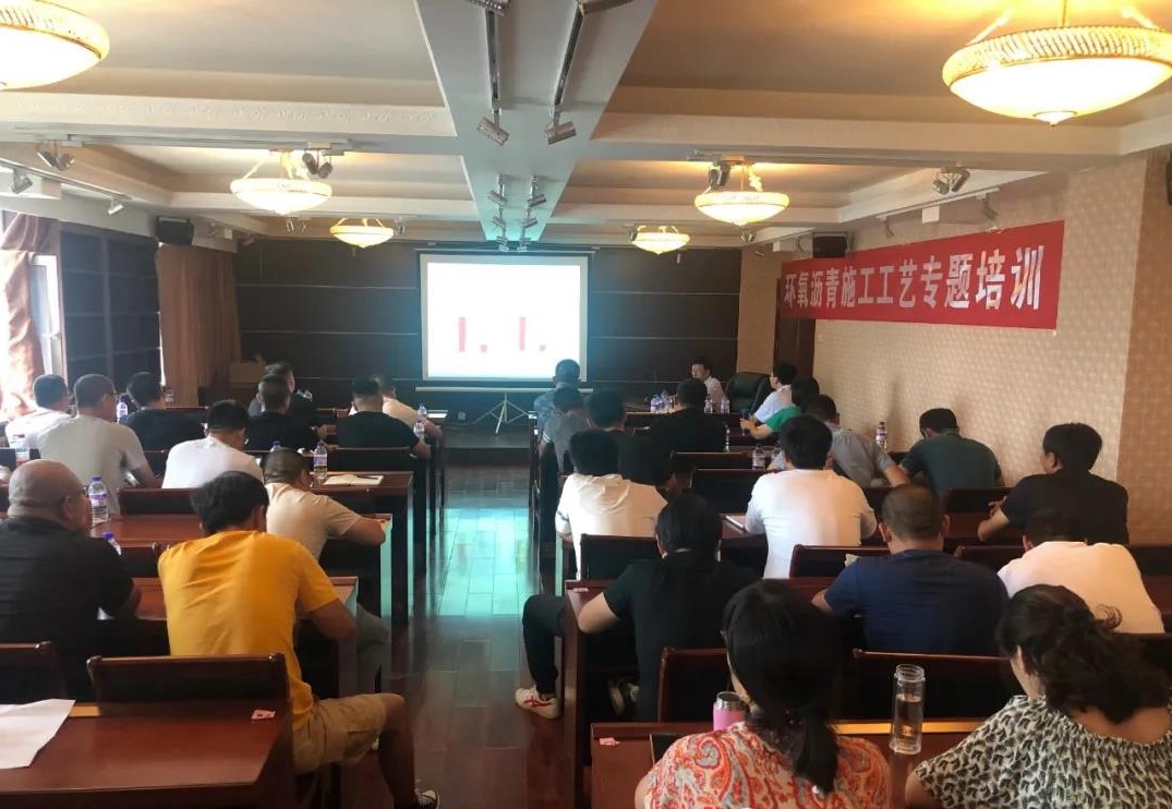 此次培訓由辰宇公司聯合新通和有限公司開展,主要對環氧瀝青的基本原理、防水粘結層工藝流程、環氧瀝青混凝土橋面鋪裝施工技術及管理過程中常見問題的解決辦法等進行了詳細講解。通過此次培訓,大家進一步掌握了環氧瀝青的生產、施工工藝,對下一步順利生產及施工奠定了基礎。