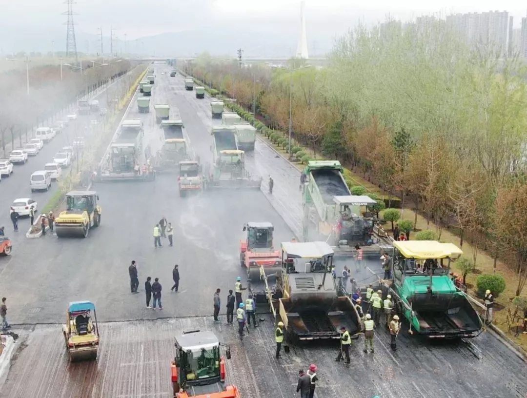 4月10日,隨著最后100米瀝青路面的攤鋪結束,一條黝黑發亮、筆直寬闊的道路重新呈現在市民眼前。
