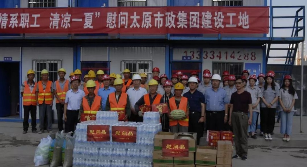 慰問中,太原市總工會黨組書記、常務(wù)副主席馮潤春與施工人員一一握手,代表太原市總工會向奮戰(zhàn)在高溫一線的廣大職工表示慰問和關(guān)懷,親手將西瓜、綠豆、礦泉水等慰問品送到施工人員手中,并叮囑大家在炎熱夏季要做好防暑降溫工作,為太原市城市建設(shè)作出更大貢獻(xiàn)。